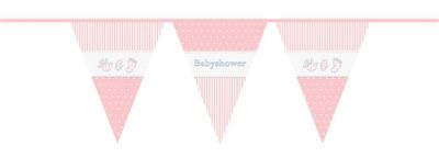 Vlaggenlijn van kunststof vlaggetjes. De vlaggenlijn is 10 meter lang en is zacht roze van kleur.