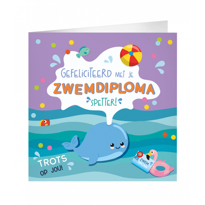 Inloggen| RegistrerenGrote kaart in het thema zwemdiploma. De kaart is ongeveer 22,5 x 23 cm groot en wordt geleverd met een envelop erbij.
